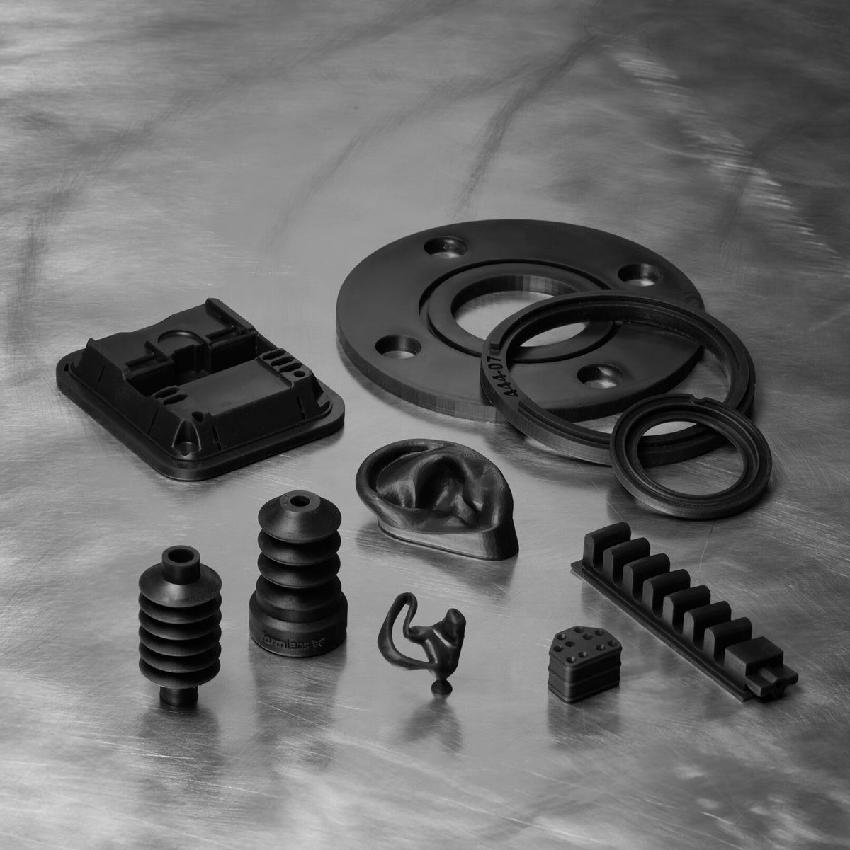 Silicone 40Aレジンは現在、米Formlabs Inc.にて米国の有害物質規制法(TSCA)の登録完了待ちであり、長期皮膚接触の生体適合性認証待ちの状態で、現状では研究開発や試作用途に限られます。これらの完了後は、自動車、モビリティ、産業機械、消費者向け製品や医療機器、義肢装具などで、ガスケット、シール、クッション部材や保護部材、シリコン型のような成形型、軟質治具、消費者向け製品の軟質部品など、実製品用パーツや量産用のツーリングを含む幅広い用途で活用されることを想定しています。