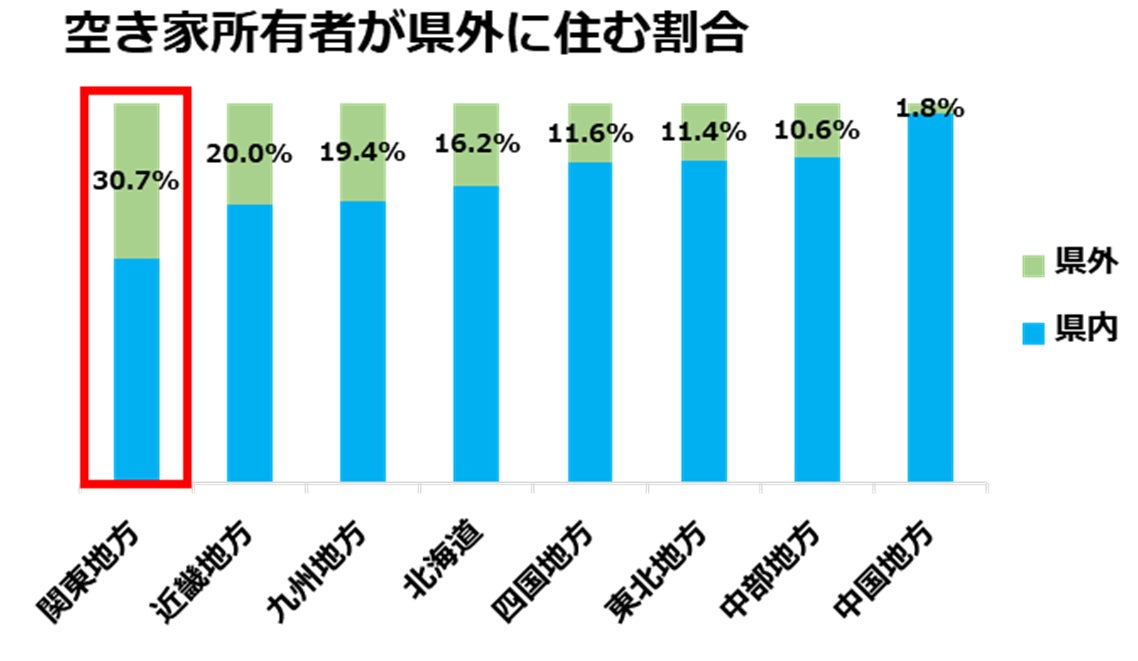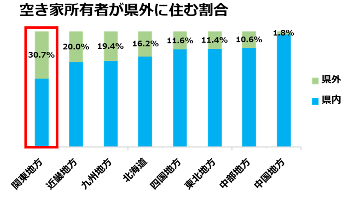 - 遠方に空き家を抱える人が最も多い関東地方の空き家問題