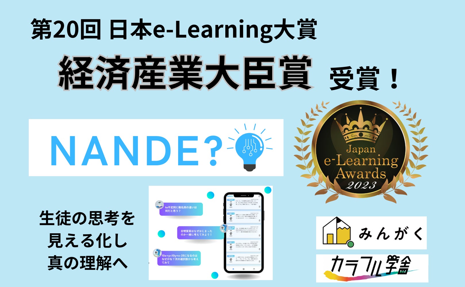 生徒の思考プロセス可視化ツール【NANDE】が第20回 日本e-Learning大賞「経済産業大臣賞」を受賞