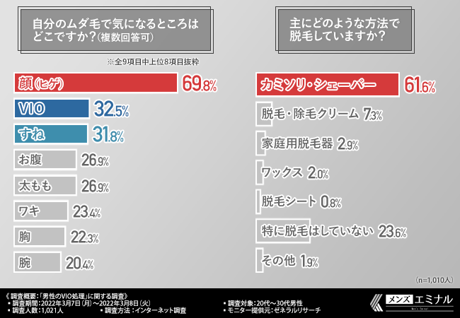 そこで今回、メンズ医療脱毛クリニック『メンズエミナル』(https://mens-eminal.jp/lp/?refmedia=31073)は、20代~30代男性を対象に、「男性のVIO処理」に関する調査を実施しました。