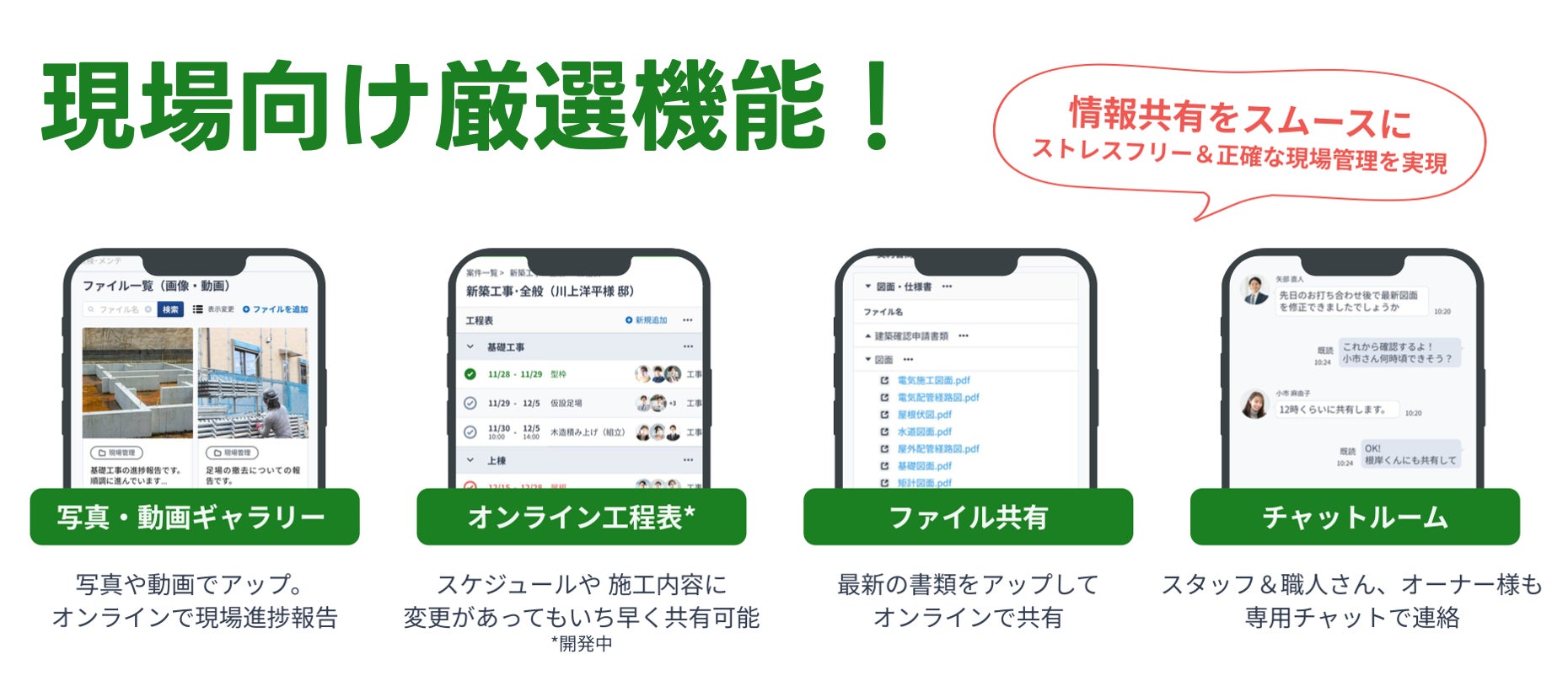 注文住宅の現場に特化したシンプルで分かりやすい機能だから、現場での操作もスムーズです。