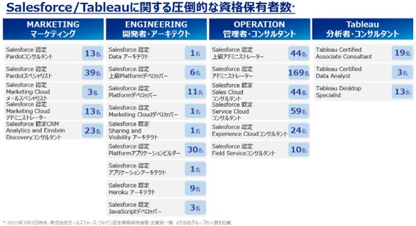 Salesforce認定資格を1~3個を保有、Salesforce導入支援プロジェクトの実装を複数経験しているメンバー。