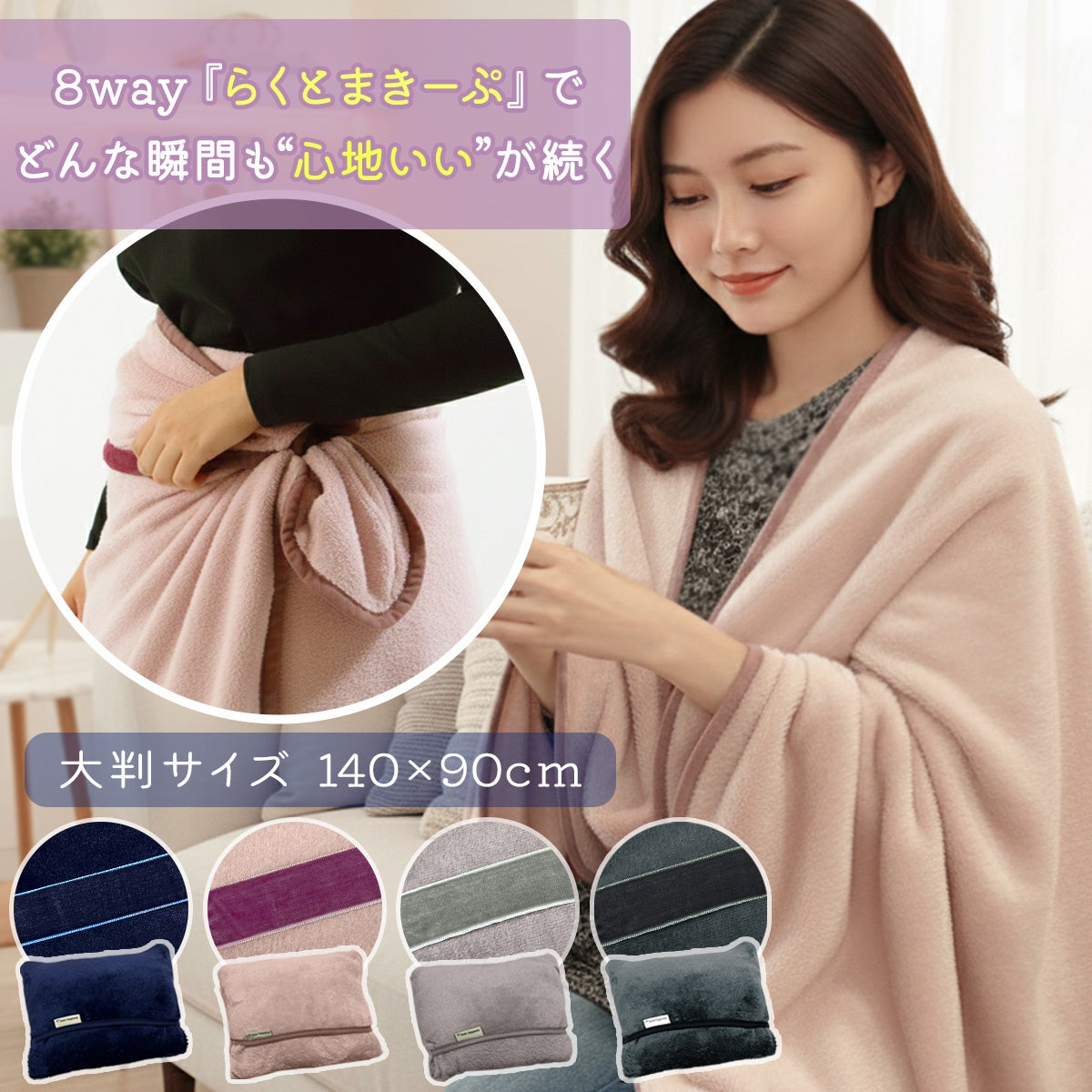 くるんと丸めてクッションに!ラクにとまって巻きつけキープ、新機能搭載の多機能ブランケット。