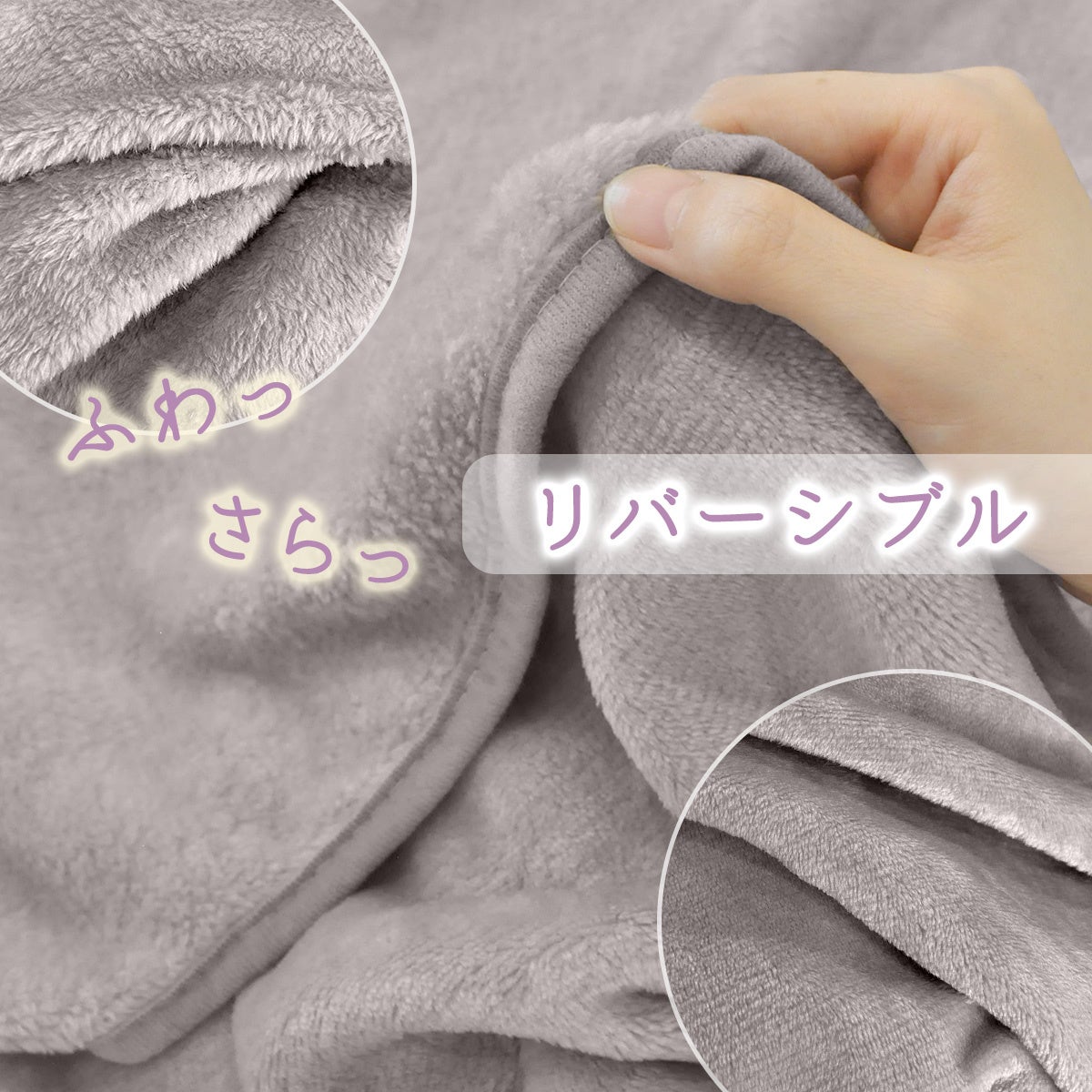 生地にこだわりの極上起毛素材を使用し、肌触りの良さを追求しました。表面はもこもこ、ふわふわでやわらかく、裏面はさらりとした感触のリバーシブル生地。折り畳み時は、程よいサイズと弾力で昼寝用の枕としてもオススメです。ファスナーを使用していないので、ファスナーが壊れたり、顔に当たって違和感があるといったことがありません。
