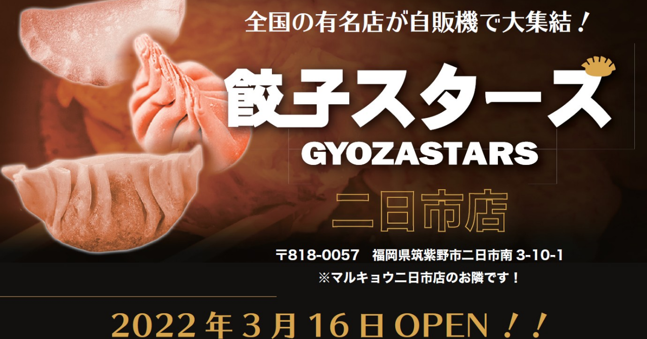 第一号店は餃子スターズ二日市店(山岐庵前 〒818-0057 福岡県筑紫野市二日市南3丁目10−1)に設置、3月16日よりOPEN。3月22日には2号店、餃子スターズ宮の陣店(コインランドリー宮の陣店 晴れたらいいね!前 〒839-0801 福岡県久留米市宮ノ陣6丁目1−1)にOPEN、同日に3号店餃子スターズ東白島店(広島市内)がOPENします。