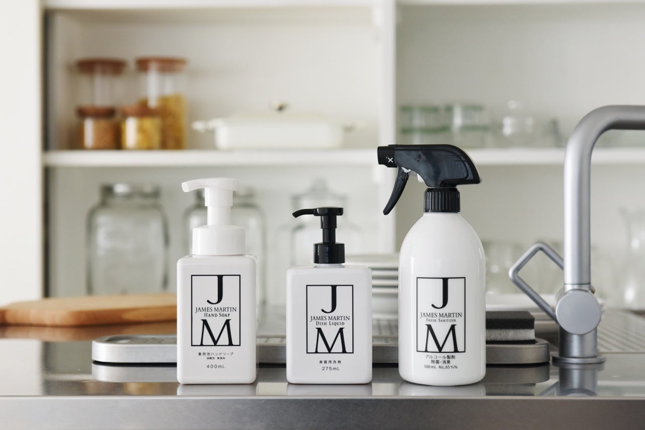 JAMES MARTINは、株式会社ファーストコレクションが展開する、除菌・洗浄に特化したブランド。「暮らしの景色を美しく」をコンセプトに様々な場所になじむスタイリッシュかつシンプルなデザインが特徴です。主力商品である「ジェームズマーティン フレッシュサニタイザー」は、様々なウイルス・細菌等に対する確かな除菌効果のあるアルコール製剤です。飲食業界から確かな信頼を得て、用途に応じたサイズ・ボトル展開でシリーズ化し、一般のご家庭、オフィス、医療機関等でもご愛用いただいている製品です。