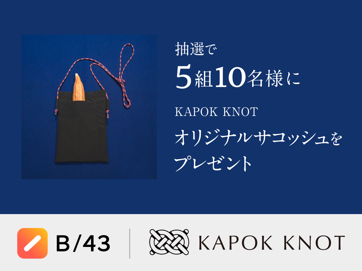 - 【追加条件】KAPOK KNOT公式Twitter(https://twitter.com/kapok_knot)をフォロー ▶「KAPOK KNOT」オリジナルサコッシュバッグが5組10名様に当たるチャンス!