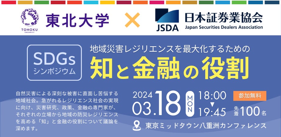 東北大学×日本証券業協会 ◤地域災害レジリエンスを最大化するための知と金融の役割◢ SDGsシンポジウム