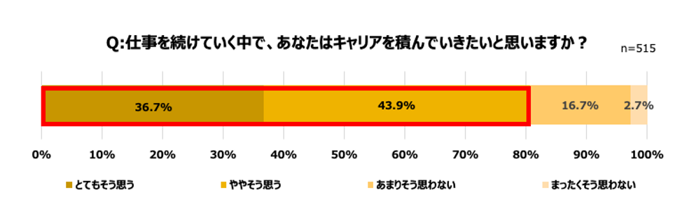■仕事を通じてキャリアを積んでいきたい女性は約8割と高い結果に。