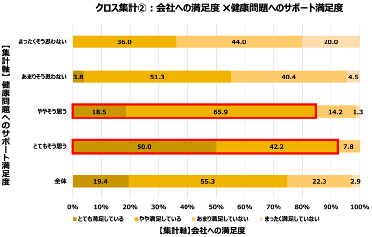 [図12]クロス集計:「会社への満足度」 ✖️ 「健康問題へのサポート満足度」