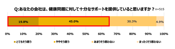 約6割の女性が、会社は健康問題に対して十分なサポートを提供していると回答。