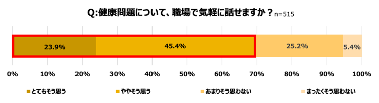 約7割の女性が、職場で気軽に健康問題について話せると回答。