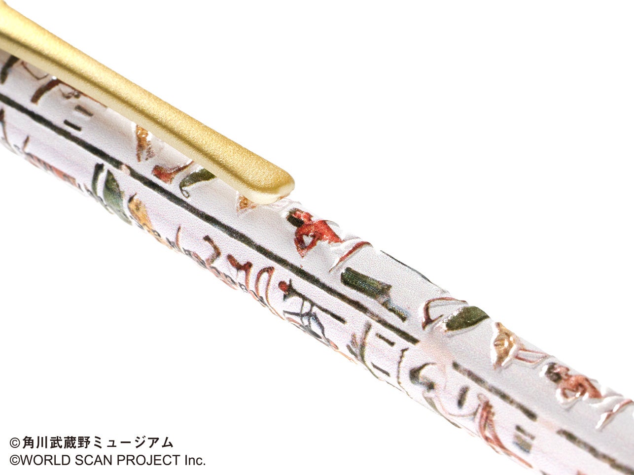 古代エジプトの奥深さを感じる象形文字「ヒエログリフ」のアートペンは、カラフルなデザインを全面にあしらい、高精細な凹凸をつけて文字のひとつひとつを立体にして浮かび上がらせています。目を閉じて指でなぞれば、古代エジプトに思いを馳せる特別な時間が流れます。