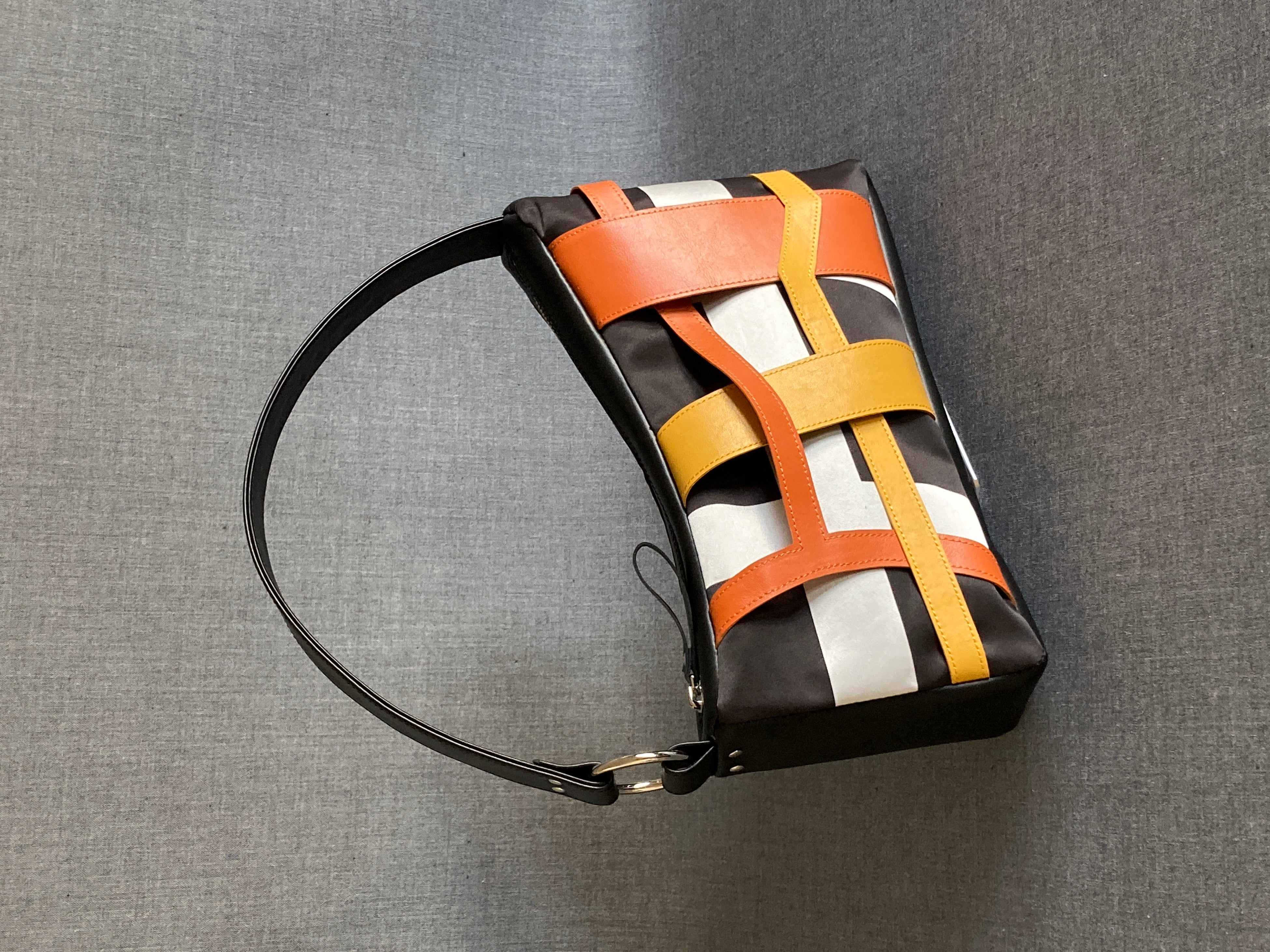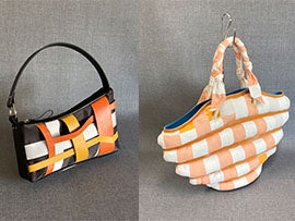 空間装飾用プリント地をアップサイクルし、バッグデザイン科の学生たちがデザイン、制作したバッグ