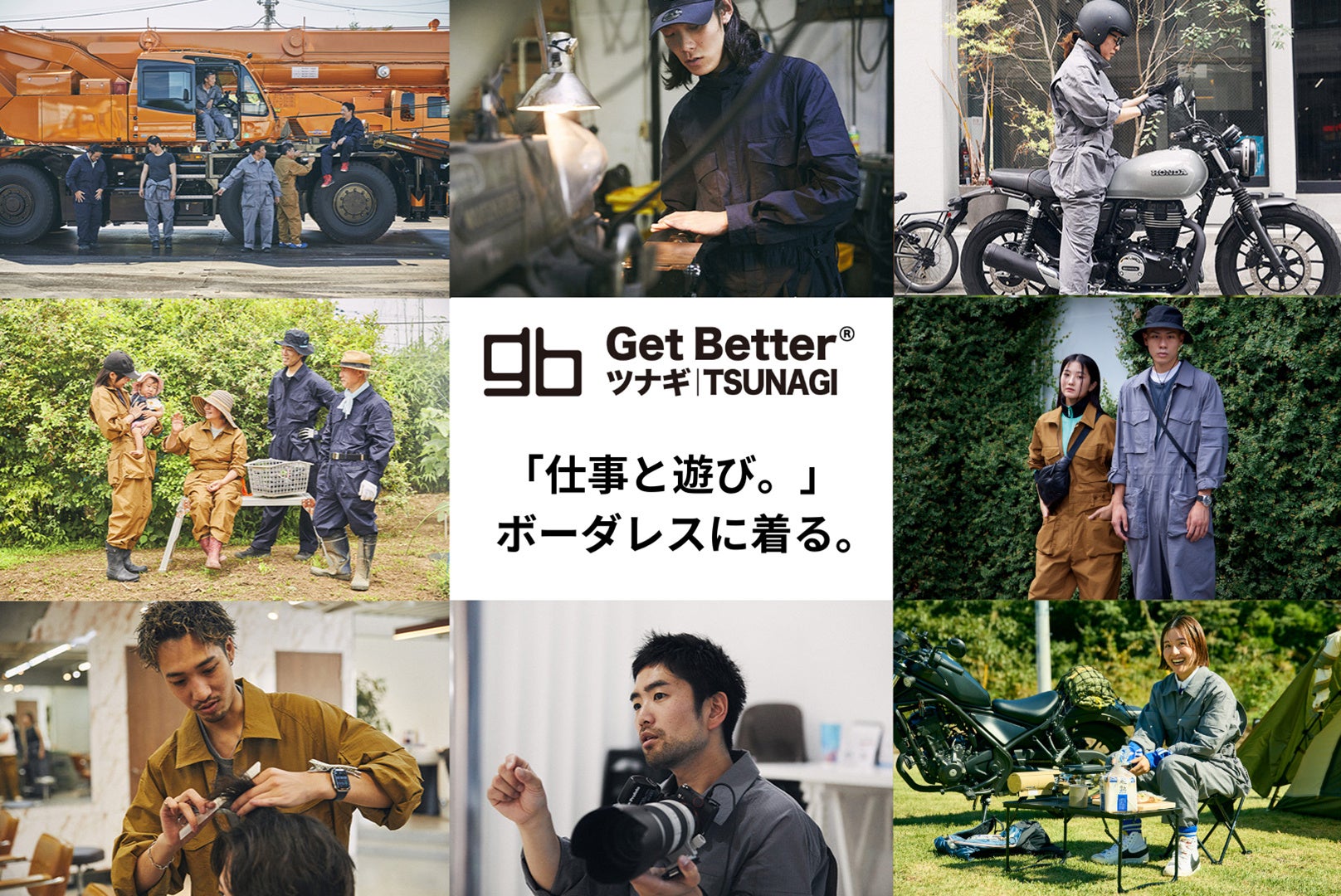 GetBetterのツナギ|TSUNAGIが、職業のジャンルを超えて、休日を過ごす趣味のジャンルを超えて「着用シーンという概念をゼロにする。」という夢に向かって新しいスタイルを提案して参ります。