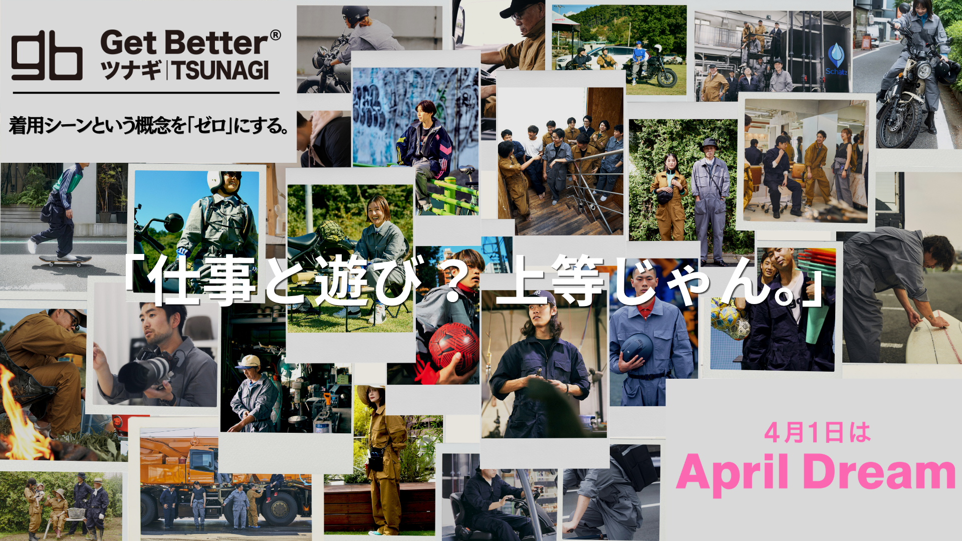 ゲットベター株式会社(所在地:東京都豊島区、代表取締役:三鍋好輝)がオリジナルブランドで展開する、仕事と遊び、ボーダレスに着用する【GetBettrのツナギ|TSUNAGI】は、「April Dream2026」に参加しています。当社は、4月1日を夢を発信する日にしようとするApril Dreamに賛同しています。このプレスリリースはゲットベター株式会社の夢です。