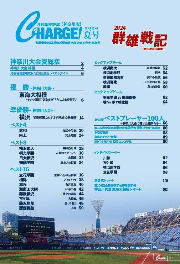 【月刊高校野球CHARGE! 第106回全国高等学校野球選手権 神奈川大会夏総集号】が全国書店、公式サイト、Amazon、ASA※1、セブンイレブン※1などで9月28日に発売※1神奈川県内、一部を除く