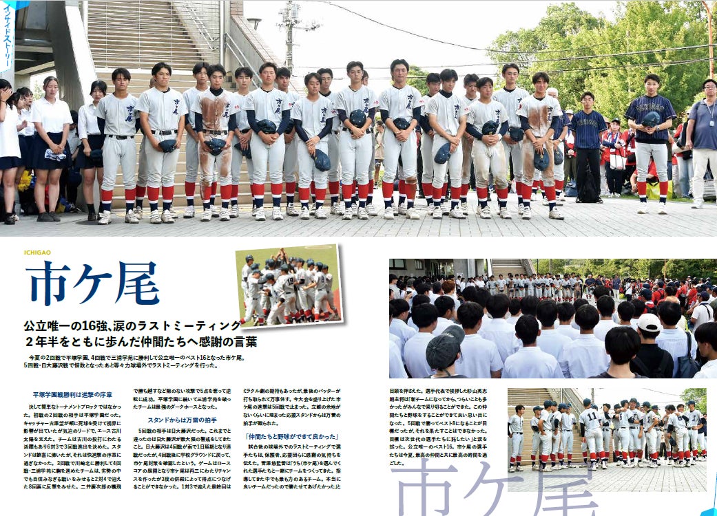 今夏の2回戦で平塚学園、4回戦で三浦学苑に勝利して公立唯一のベスト16となった市ケ尾。5回戦・日大藤沢戦で惜敗となったあとの涙のラストミーティングの様子をお届けします。