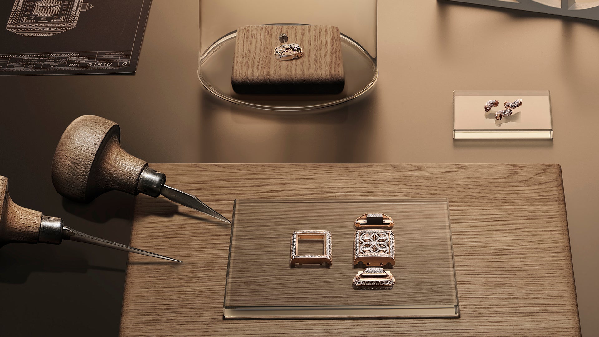 レベルソの原点であるアール・デコ デザインをハイジュエリーの壮麗なアイテムとして新たに解釈し、ジュエリーの技と希少なクラフトマンシップおよび高級時計製造を見事に融合しました。
