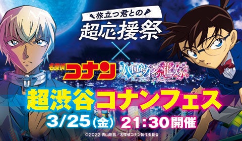 KDDI株式会社 (本社: 東京都千代田区、代表取締役社長: 高橋 誠、以下 KDDI) は、au「旅立つ君との超応援祭」の後夜祭として、劇場版「名探偵コナン ハロウィンの花嫁」超渋谷コナンフェス(以下、本イベント)を3月25日に開催します。当日は、江戸川コナンと安室透が都市連動型メタバース「バーチャル渋谷」に、2021年10月30日に行われた特別トークショーぶりに登場。4月に迫った劇場版最新作『名探偵コナン ハロウィンの花嫁』 の公開を記念して、一夜限りのスペシャルトークを展開します。