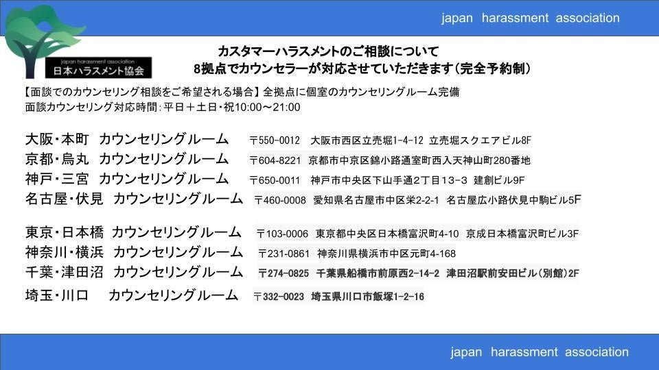【カスタマーハラスメントのご相談について8拠点でカウンセラーが対応させていただきます(完全予約制)】