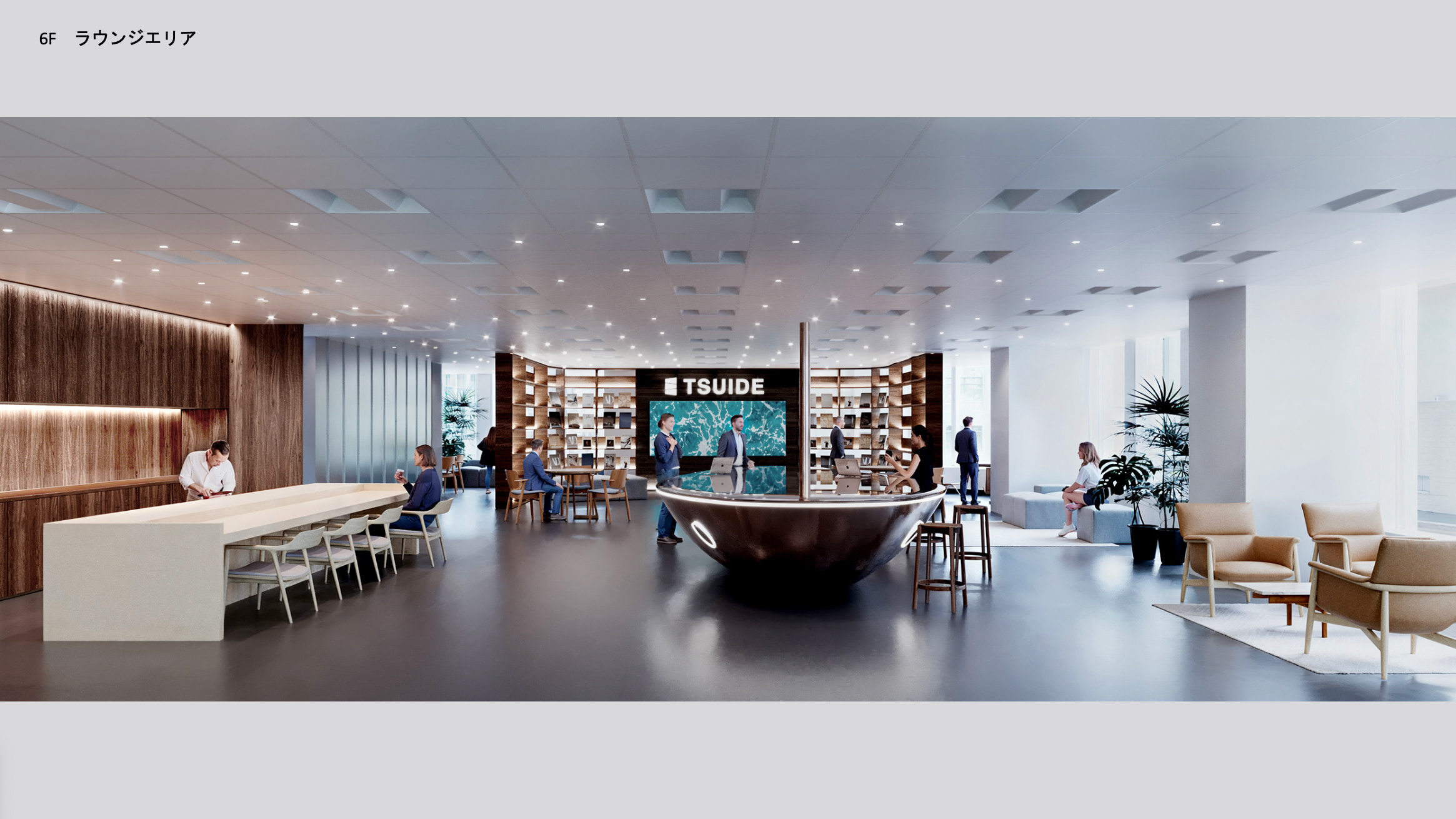 集中と生産性を最大化するためのフロア。 明るくニュートラルなトーンを基調とし、機能性を重視した家具配置によって、個々が自律的に働く環境を整えています。 TSUIDEの「頭脳」として、思考を深め、質の高いアウトプットを生み出すための空間です。