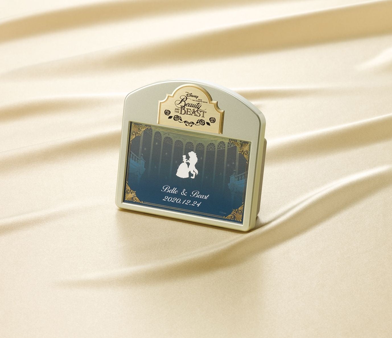 ディズニー・アニメーション映画「美女と野獣」のテーマ曲「Beauty and the Beast」とともに、お二人の名前や記念日が印字できる、フレーム式のオルゴールです。