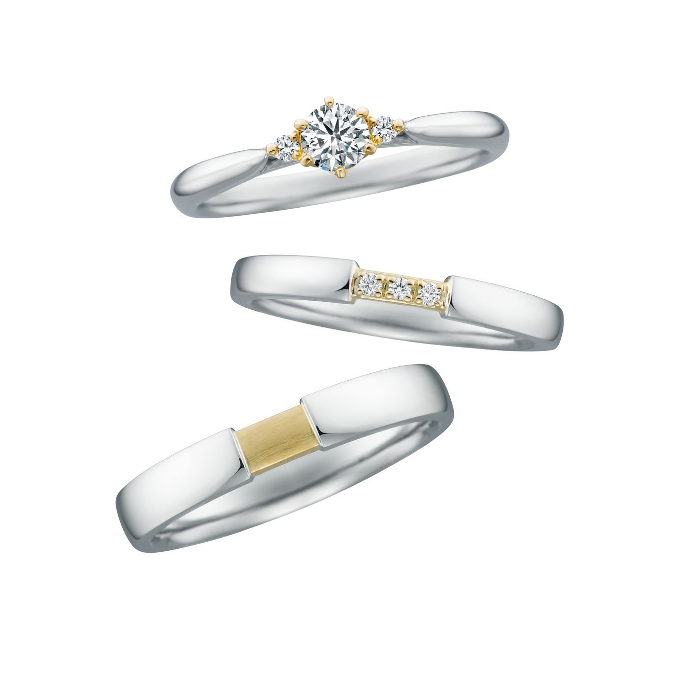 二本のマリッジリングを重ねると、一本のゴールドラインが繋がるようにデザインされています。
