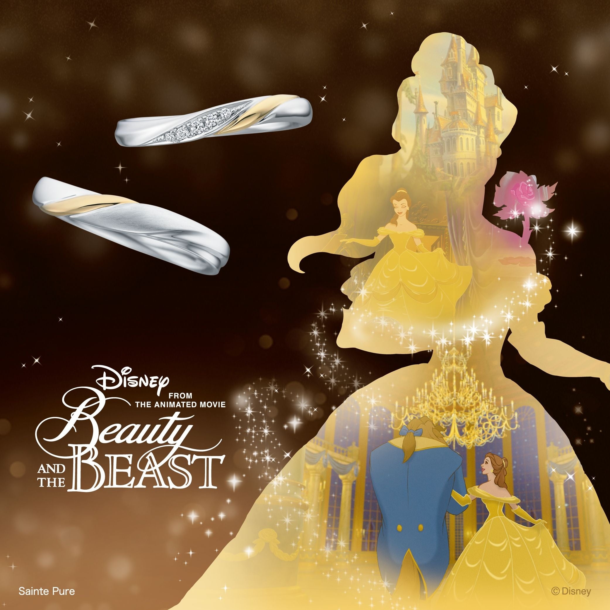 お二人の真実の愛への願いを指輪に込めた、ディズニー・アニメーション映画『美女と野獣』ブライダルコレクション。