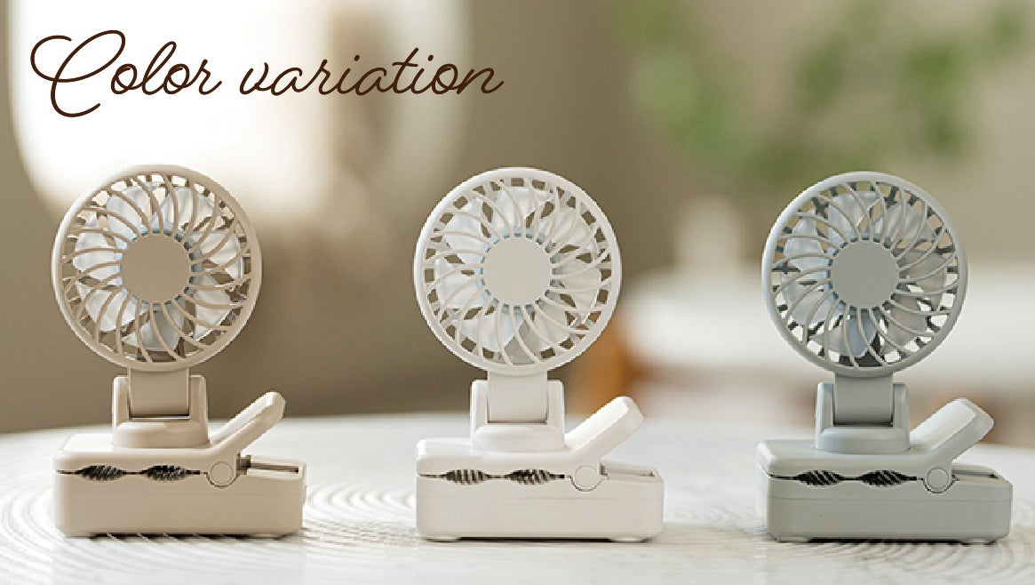ニュアンスカラーの「充電式ミニクリップファン」は、“ハンディ・卓上・クリップ”の3WAY仕様で、シーンに合わせて使い方を自在に変えられる新感覚の多機能ファンです。オフィス、アウトドア、キッチンなど、どこでも使える設計で、快適な夏をサポートします。