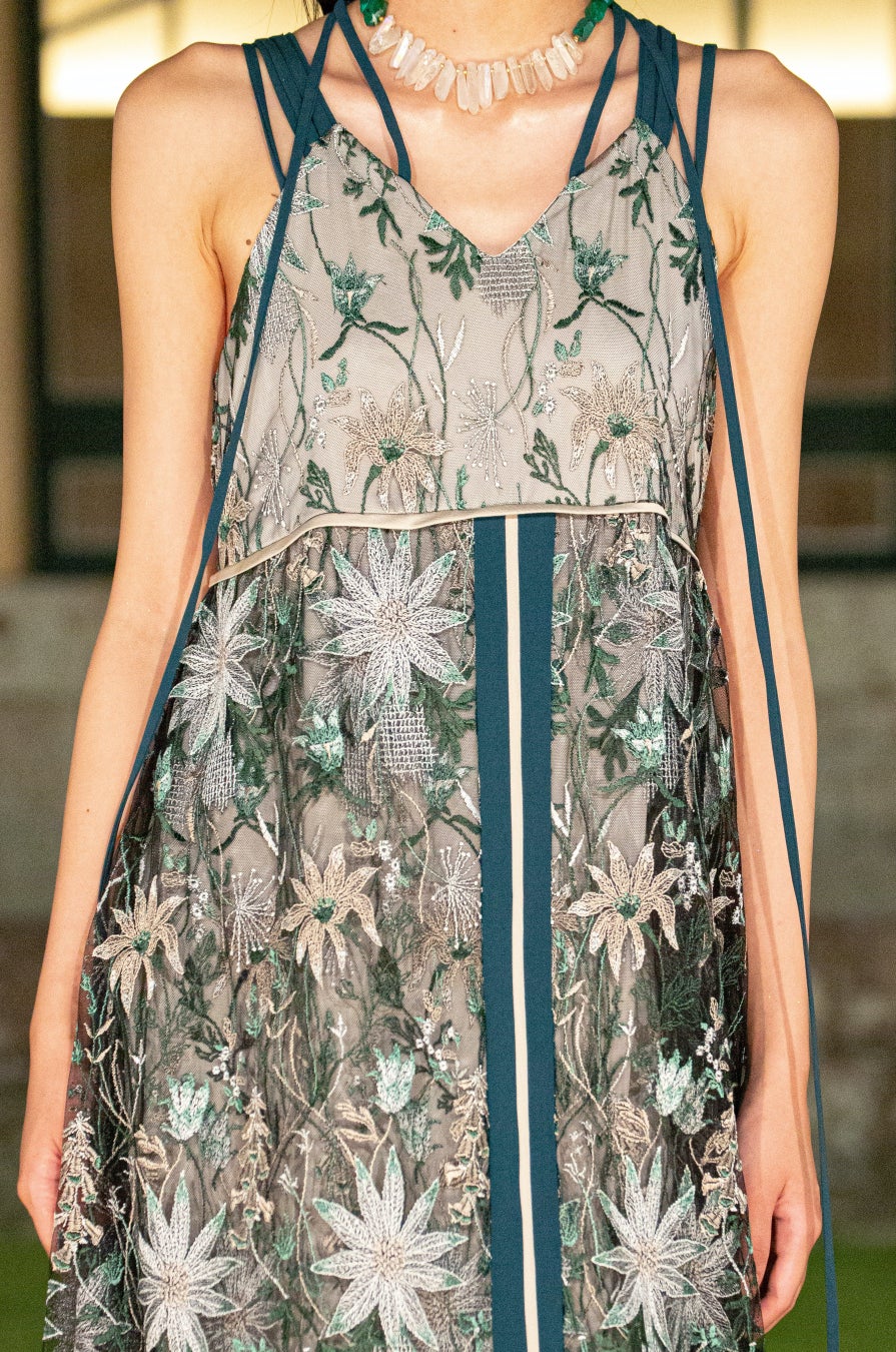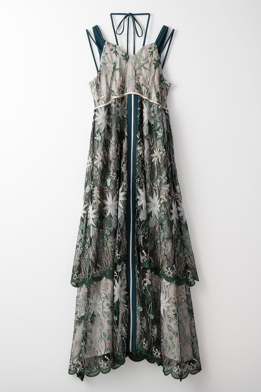 June Brideの季節が近づき、友人や親族の式への参列衣装にぜひ手にとっていただきたいMURRALの繊細なレースシリーズ。”Everlasting embroidery camisole dress”に大きく咲き誇るフランネルフラワーや華奢に佇むカスミソウ。レースの上で色鮮やかに咲き乱れる花たちは、全てデザイナーが幼少期に過ごした庭の花がモチーフとなっています。身頃はウエストよりやや上で切り替わり、2段のレースが裾に向かって優雅に広がるシルエット。MURRALらしい首元の開きや肩紐の可憐なデザインが上品さをプラスしています。