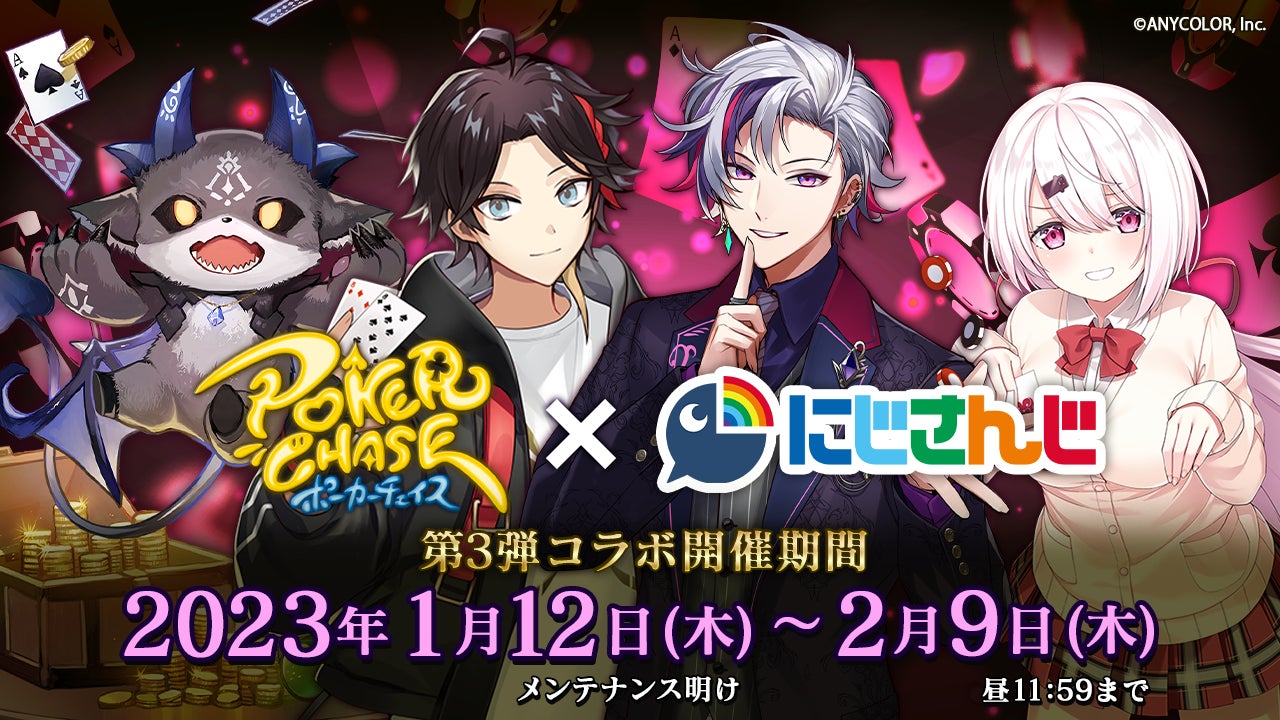 株式会社C-bet(東京都渋谷区、代表:田谷野 貴正、https://c-bet.co.jp/)は、バトロワ式オンラインポーカーゲーム『ポーカーチェイス』と人気バーチャルライバーグループ「にじさんじ」との第3弾コラボイベントが本日1月12日(木)よりスタートすることをお知らせします。