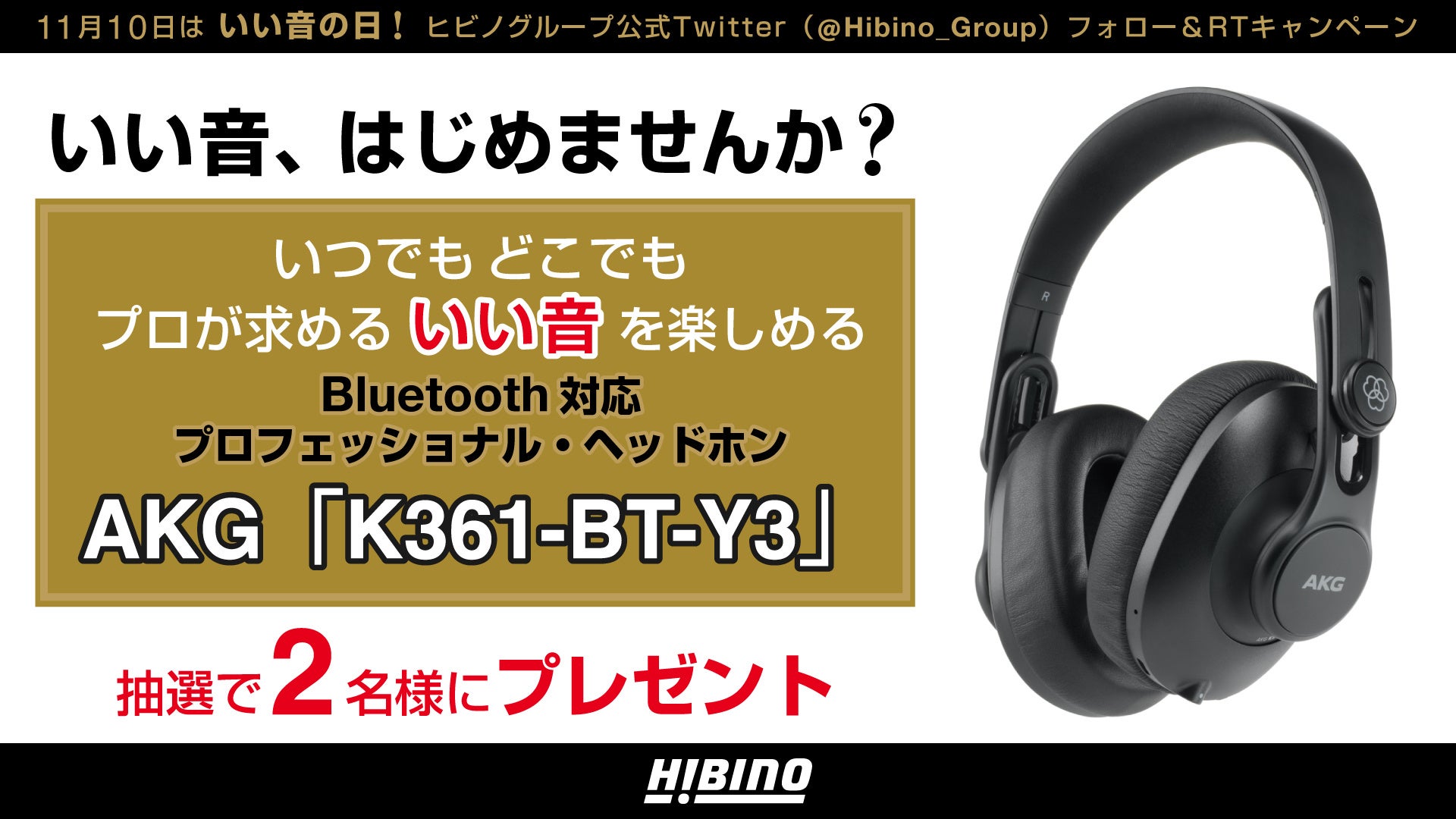 音と映像で、世界に感動をクリエイトするヒビノ株式会社(本社:東京都港区、代表取締役社長:日比野 晃久)は、11月10日の「いい音の日」にちなんで2022年11月10日(木)から23日(水)まで公式Twitterアカウント(@Hibino_Group)にて原音の再現性を追求したAKGのプロフェッショナル・ヘッドホンが当たるTwitterフォロー&リツイートキャンペーン「いい音、はじめませんか?」を開催します。ご応募いただいた方の中から抽選で2名様に、いつでもどこでもプロが求める音質で「いい音」を楽しめるBluetooth対応のAKGプロフェッショナル・ヘッドホン「K361-BT-Y3」をプレゼントいたします。