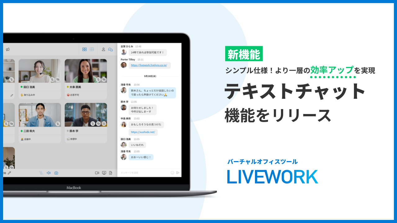 仮想オフィスツール LIVEWORK(ライブワーク) 簡単かつ軽快なテキストコミュニケーションで、チームコラボレーションを加速するテキストチャット機能をリリース