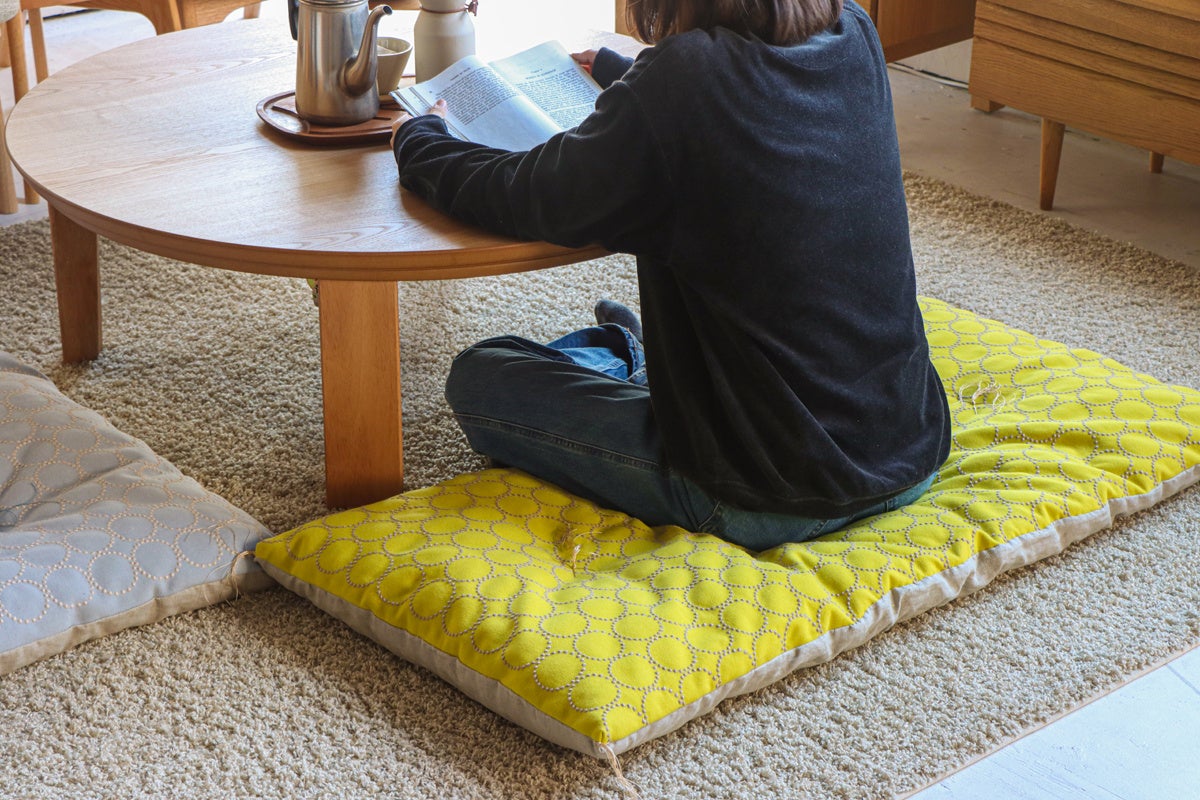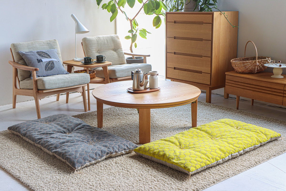 「座」のスタイル。昨今では欧米の暮らしに近くなり、ダイニングテーブルやソファを配置する家庭が多くなってきたかと思います。しかし、結局日本人が落ち着くのは床での生活ではないでしょうか?ソファを背もたれにしたり、コタツを使ったり、リビングテーブルで食事をしたり、床の上に寝転がってゴロゴロするのが好きな方も多いと思います。 今回はそんな日本の生活スタイルに合わせた長座布団に