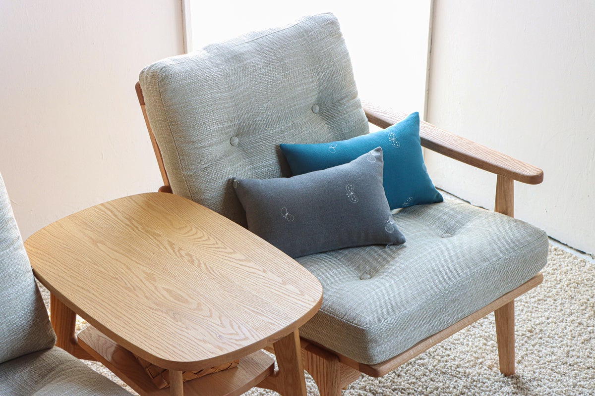 生地の肌触りとさりげなく入ったチョウチョの刺繍が、持っているだけで心地のよいクッションです。