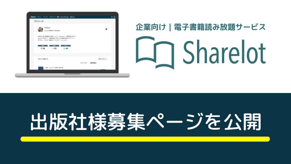 Sharelotは、2023年2月21日にオープンβ版をリリースした企業向け電子書籍読み放題サービスです。