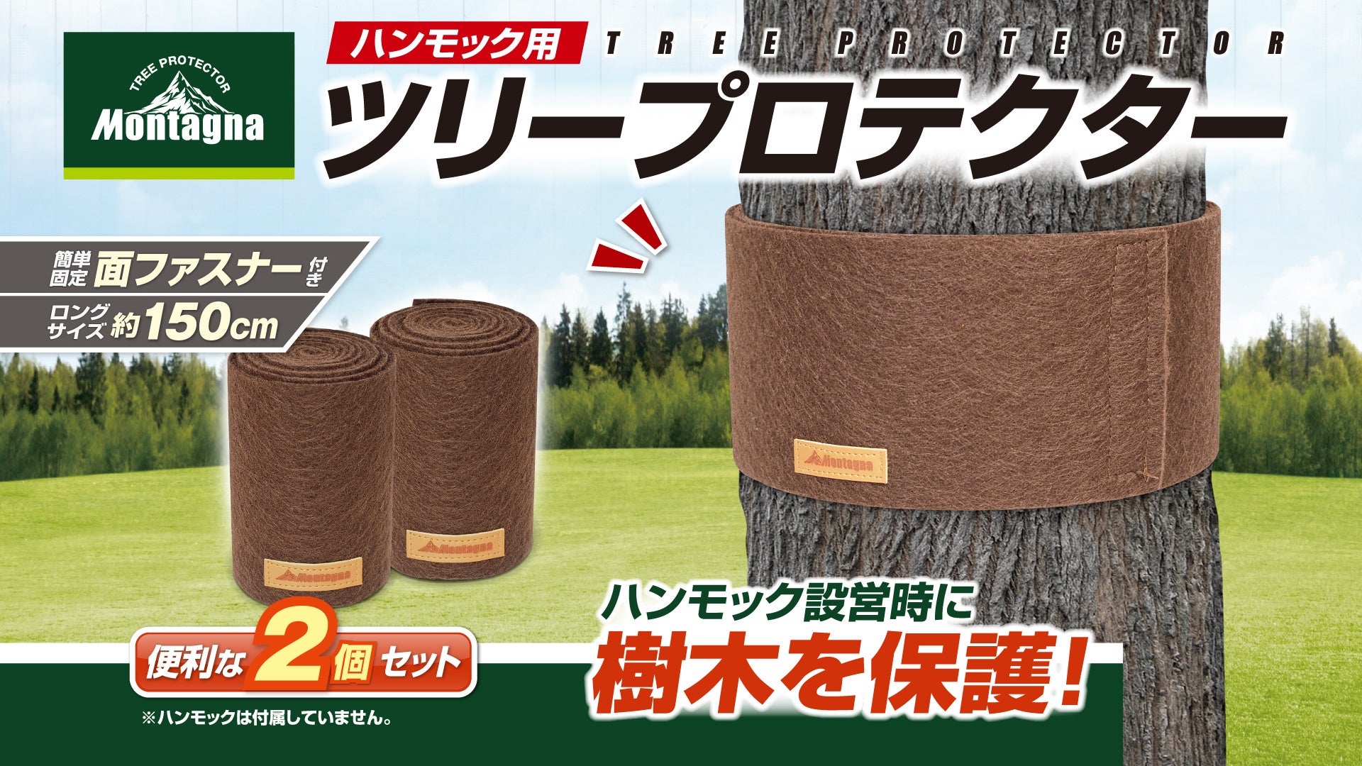 アウトドアブランド「Montagna(モンターナ)」は、2022年春より、ハンモック設営やロープワークから木を保護する『ツリープロテクター』、食べ残しや廃油の後処理を楽にする『固めてエコキャン』など、環境にも配慮したアウトドアを楽しめるアイテムが新登場。
