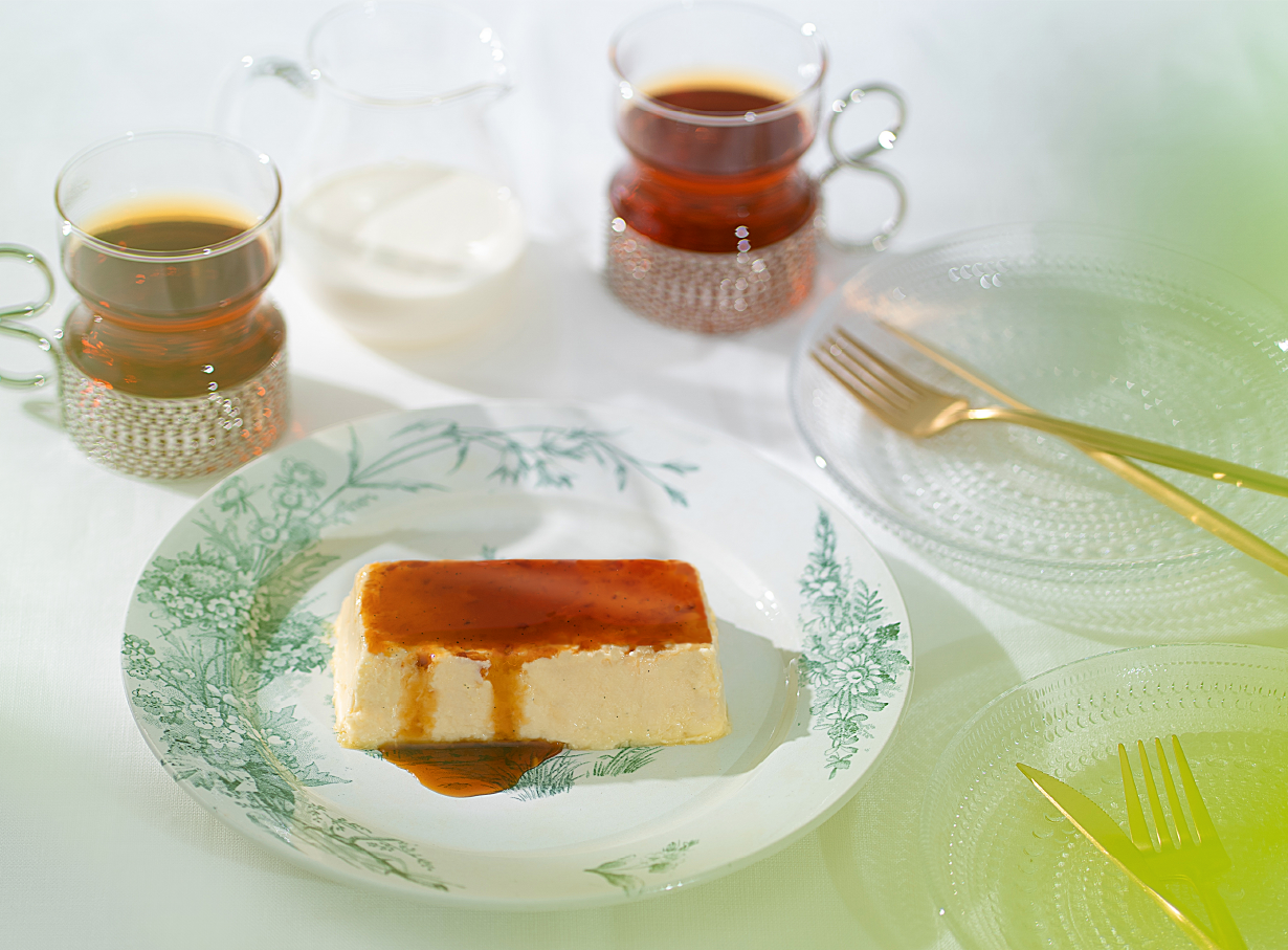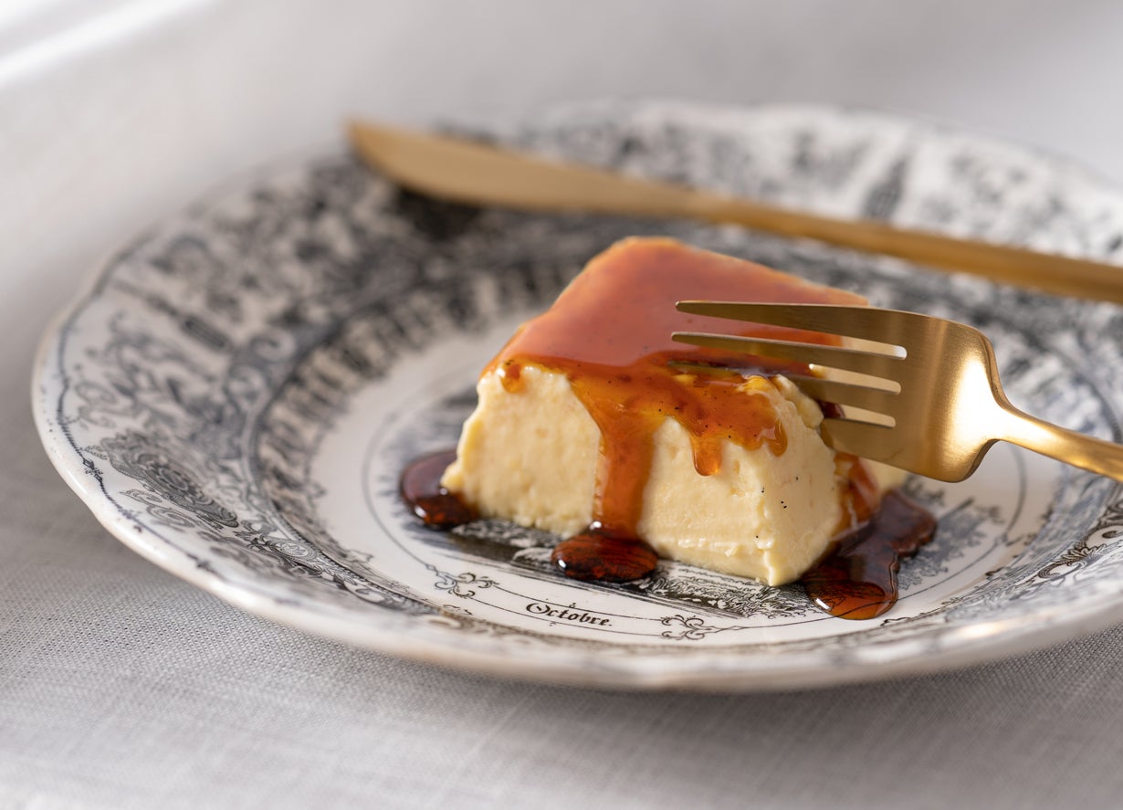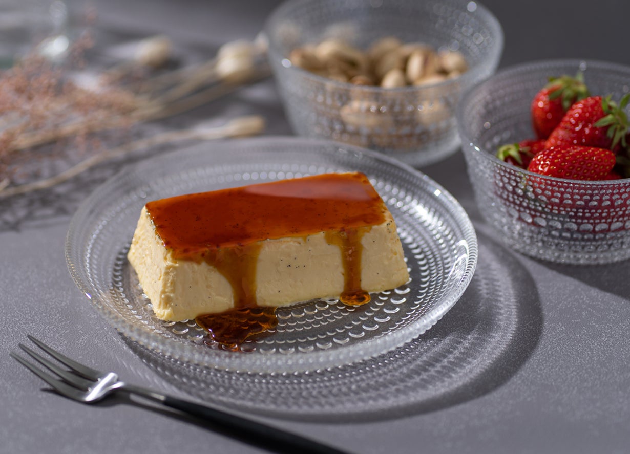 カタラーナは冷凍でお届けします。底面にカラメルを敷いているため、型から外していただくと、とろりとしたカラメルが全体に行きわたり、より美味しくお召し上がりいただけます。半解凍で、アイスクリームのように、解凍後はプリンのように柔らかく。お好みのタイミングで様々な口どけをお楽しみください。