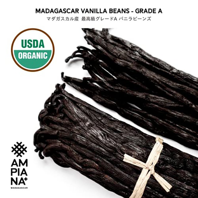 マダガスカルの周辺諸国も含めた地域で生産され、現在のレユニオン島(フランス海外県)が「ブルボン諸島」と呼ばれていたことからその名が付きました。バニラージュで使用するブルボンバニラは、農薬や化学肥料は一切使わずに自然の力で栽培し、アメリカのオーガニック認証を受けたAMPIANA VANILLAです。長さ16cm以上の最高級グレードAのバニラビーンズは、バニラの王道と言える、まっすぐに甘い香りが届きます。まさに花言葉の「永久不滅」を思わせる香りです。