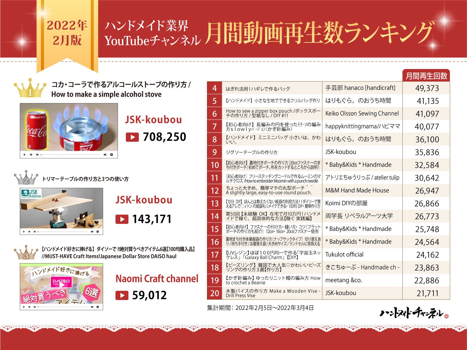 2022年2月版 ハンドメイド業界YouTube個別動画月間再生数ランキング発表