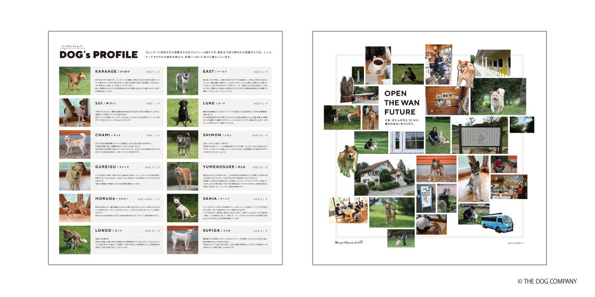 保護後に再び輝きを取り戻した保護犬たち。その笑顔で人々の日常を彩り、そして保護犬たちを支えていきたい。そんな思いを同じくとした「THE DOG」とピースワンコ・ジャパンが連携し、チーム一丸となり、夢之丞を中心とした保護犬たちの「SAVE THE DOG 2024カレンダー」を制作しました。カレンダー販売の利益は、全額ピースワンコ・ジャパン保護犬活動へ寄付させていただきます。