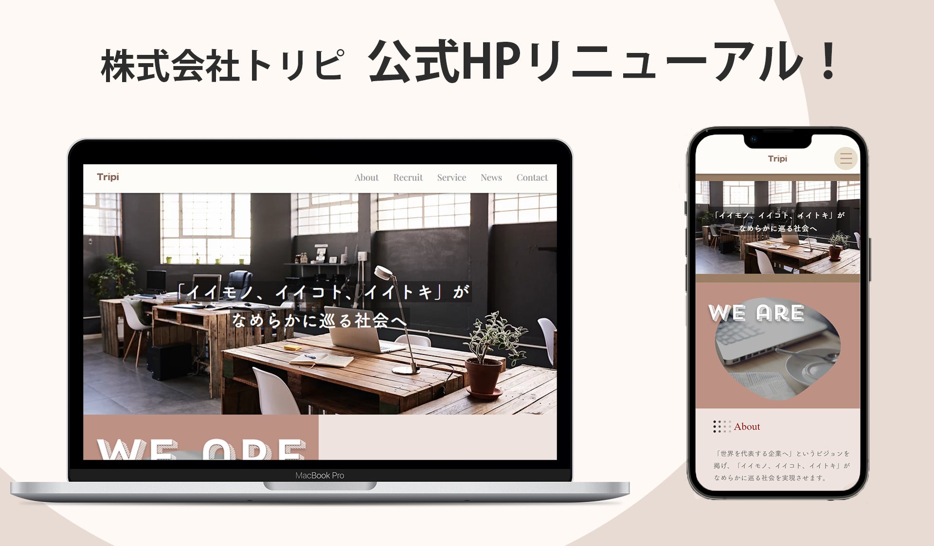 今回のリニューアルでは、新規事業である『StayGift』をはじめ、事業拡大に伴い会社HPをご覧いただく皆様に「イイモノ、イイコト、イイトキ」がなめらかに巡る社会を実現させるトリピの魅力がより伝わるよう、会社HPを全面一新いたしました。