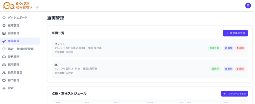 また、当社が独自に開発しているクラウドツール「らくラボ」(商標登録第6969222号)との連携も行います。らくラボは社内管理ツール、顧客管理ツール、人事労務管理ツールなど、「管理」をラクにするためのツールを数多く取り揃えております。「らくラボ」との連携を行うことで、社内データを一元的に管理できるほか、業務の引き継ぎが容易になるというメリットがあります。