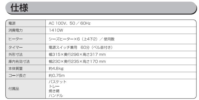 コンパクトな本体に上下で6本のヒーターを搭載することで、庫内全体を素早く加熱。