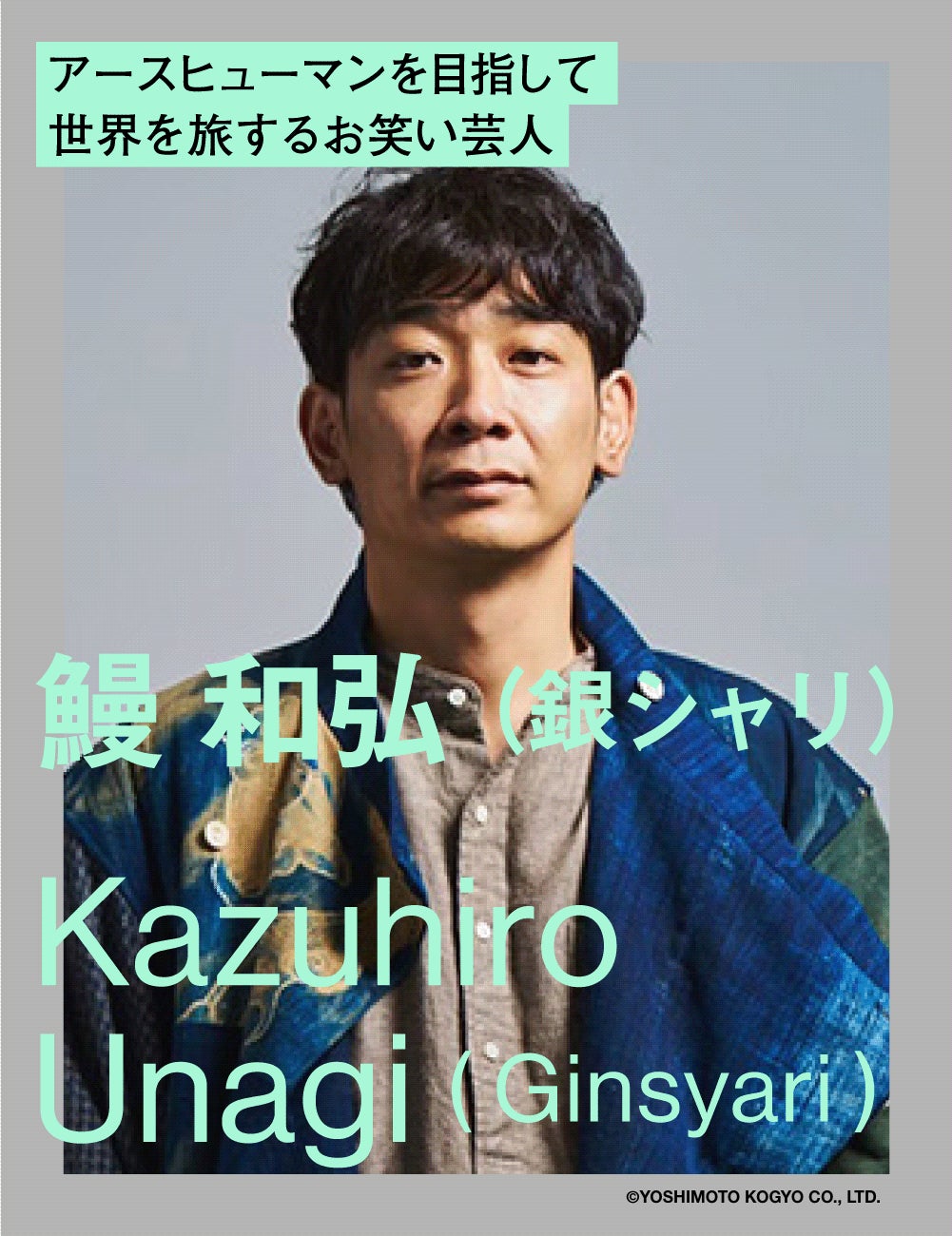 1983年大阪生まれ、吉本興業所属。2005年に橋本直と共にお笑いコンビ・銀シャリを結成。2016年、『M-1グランプリ』優勝。コンビ活動のほか、一人旅やイラスト・アート制作などの分野でも活躍。アースヒューマン(色々な国の文化、感覚、仕草などを吸収し、地球全体の感覚を持った人間)を目指して世界各地を一人旅している。