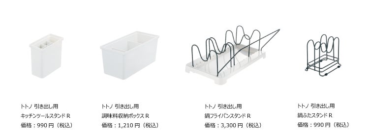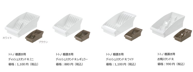 「トトノR」シリーズは、収納するだけで、キッチン引き出しや食器棚が『ずっと整う』よう思いを込めて開発いたしました。新アイテムの「棚置き用ディッシュスタンド」は食器棚を使用しているユーザーのニーズに応えた商品です。定番のホワイトと木目の食器棚にも合う、ブラウンをラインナップ。「ゴミ袋ストッカー」はゴミ袋を3本のバーにかけて収納できます。簡単に設置でき、袋を種類ごとに分別できます。その他にも整理整頓だけでなく、よく使うものを取り出しやすい場所に収納し、キッチン全体をスッキリと使いやすく、キッチン収納をずっと整えることができる全23アイテムを揃えました。