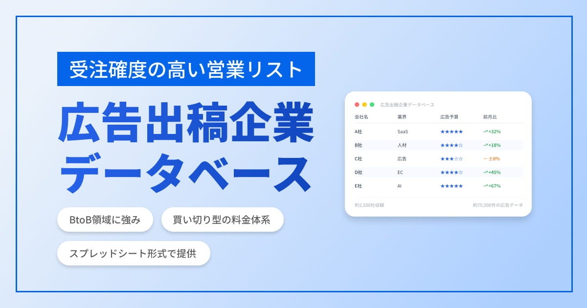 【新サービス】"今、攻めている企業"だけを厳選した営業リスト『広告出稿企業データベース』提供開始