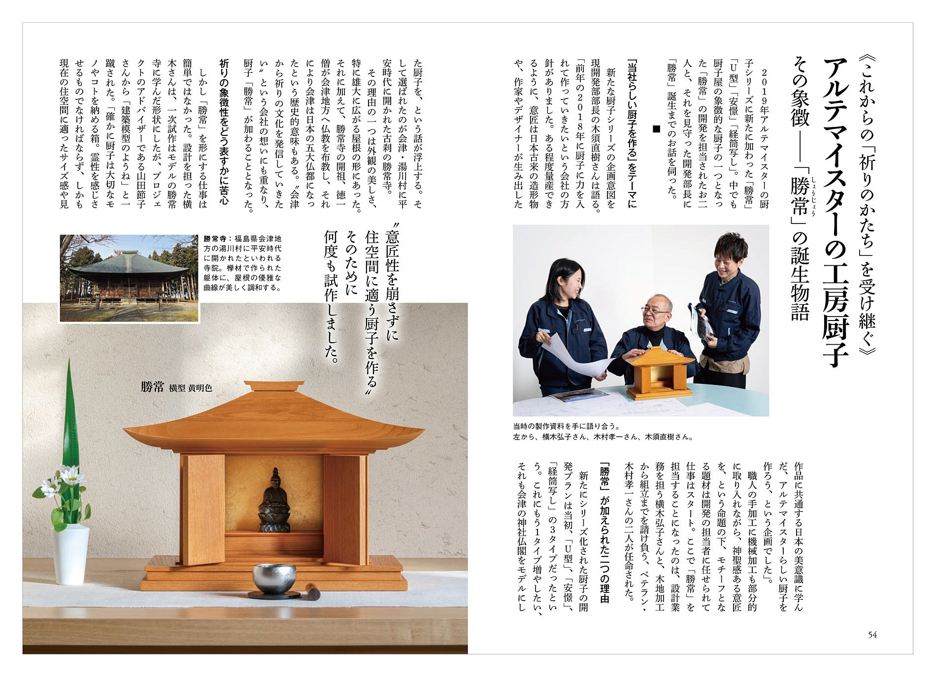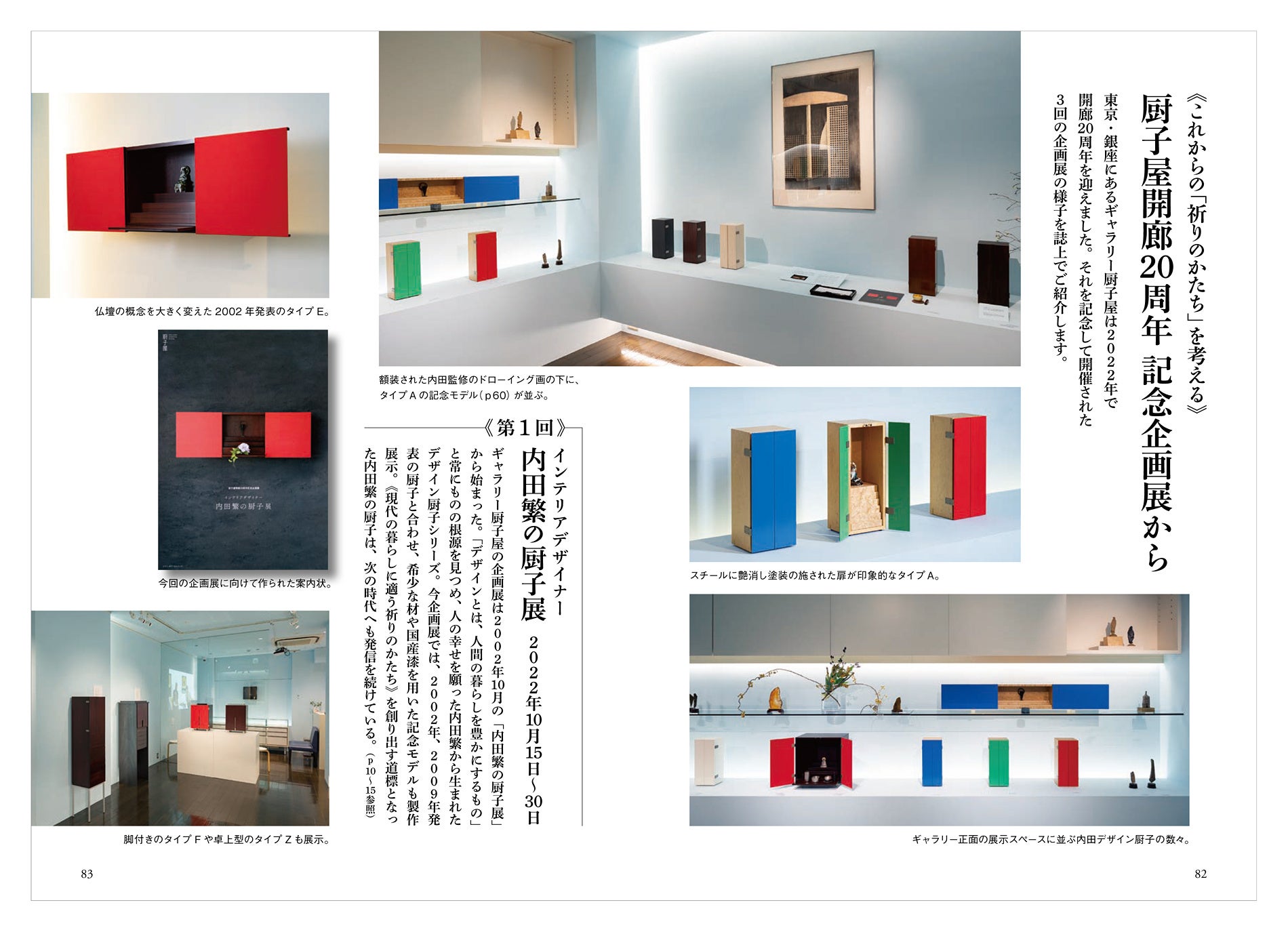 第一線で活躍するデザイナー・工芸家の創作への想いや、製造に携る職人のインタビューとともに、厨子や仏様など、作り手の想いが伝わる作品を数多く掲載しています。