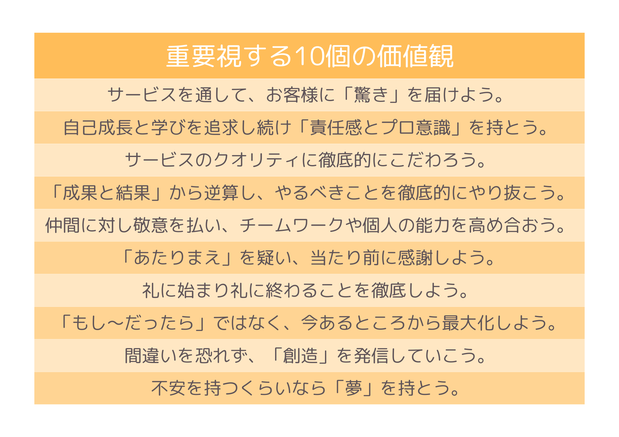 <トラストゲートグループ バリュー> 重要視する10個の価値観